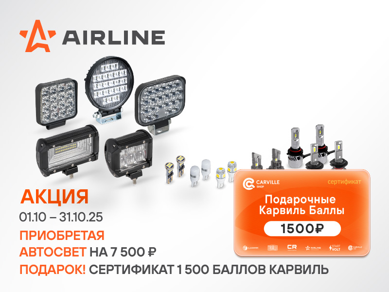 За покупку Автосвета на 7 500р. – Сертификат 1 500 Баллов Карвиль.
