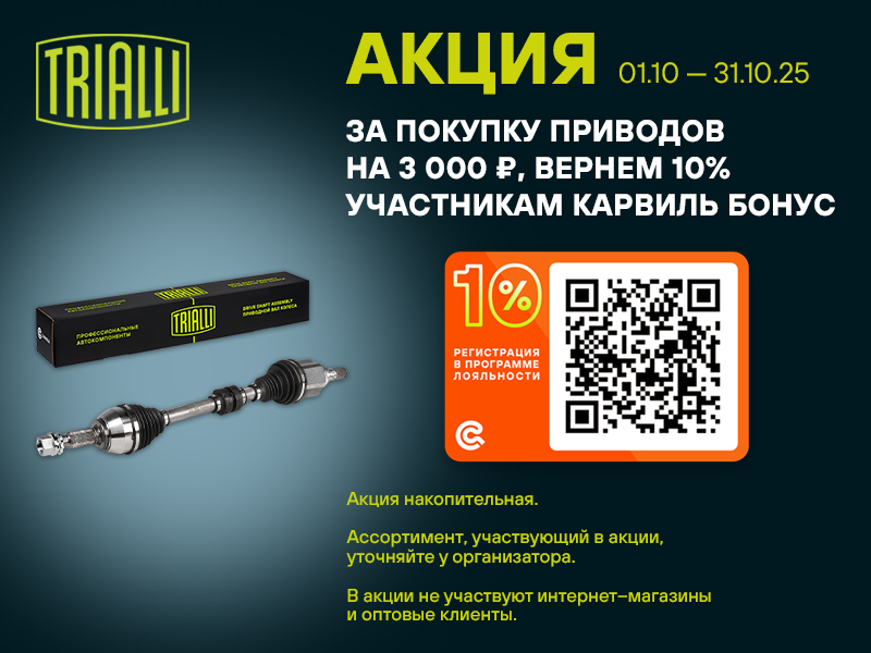 За покупку приводов на 3 000р. вернем 10% участникам Карвиль бонус.